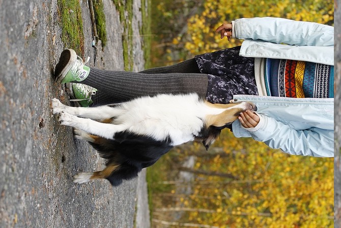 Petran Taika yritti melkein leikkiä mun koirien kanssa. Ja se suostui _istumaan_ mun ällöcollieiden kanssa! Tätä ei tosiaan joka päivä tapahdu!